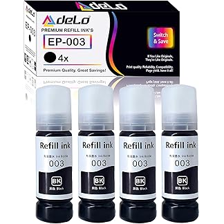 DELO 003 Compatible Refill Ink for Epson L3110 L3150 L3250 L3252 L3115 L3116 L3101 L3210 L3215 L3216 L3151 L3152 L3156, L5190 Printer – Compatible Ink Bottle for Epson 003 Ink Code (4pc Black)