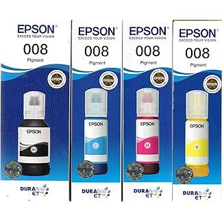 Black,Cyan,Megenta,Yellow Set of Inks 008 for Use in EPSON L6460,L6490,L15150,L15160,L15180