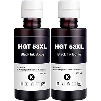 GT53 XL Black Ink Bottle (135ml) & GT52 Cyan, Magenta, Yellow Ink Bottles (70ml Each) Combo Pack | High Yield Ink Refill for HP Ink Tank Printers (gt53 2bk)