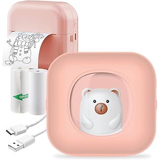 Wembley Mini Bear Themed Thermal Printer| Portable, Wireless & Rechargeable| Safe & Ink-Free Color Printer for Kids Age 5+| Print Anytime, Anywhere (Pink)