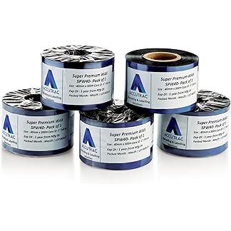 ACCUTRAC 40mm x 300 Meters Thermal Transfer Barcode Labels Ribbon Super Premium Wax for Printer TSC, Zebra, Citzen, Datamax, Thosiba, Sato Etc (Pack of 5)