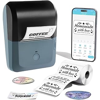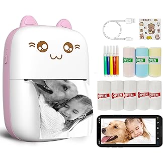 Mini Bluetooth Thermal Printer, Portable Label Printer Inkfree Printer for Android & iOS System, Thermal Printer with 5 White & 3 Colour Print Paper,Stickers,Beautiful Carry Bag