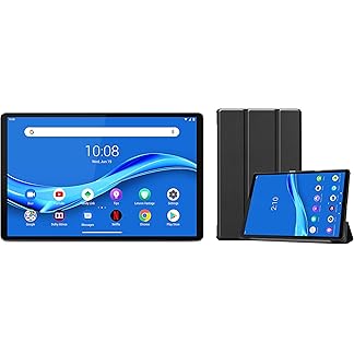 (Refurbished) Lenovo Tab M10 FHD Plus Tablet (10.3-inch, 4GB, 128GB, Wi-Fi + LTE, Volte Calling), Platinum Grey + Cover