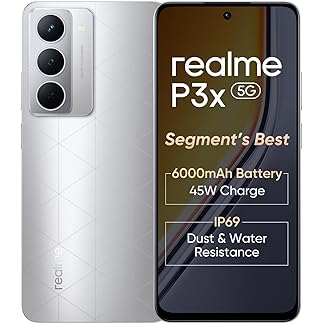 realme P3x 5G Smartphone 8+128GB Lunar Silver,6.72-inch Screen,120Hz Display,6000mAh Battery,45W SuperVOOC, 50MP Camera, MediaTek Dimensity 6400 Processor, IP64
