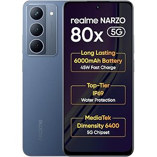 realme NARZO 80x 5G (Midnight Blue, 6GB+128GB) | Dimensity 6400 5G Chipset | 6000mAh Long-Lasting Battery | 45W Fast Charge | 120Hz Eye Comfort Display | IP69 Top-Tier Waterproof