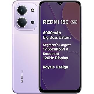 REDMI 15C 5G Dusk Purple 6GB + 128GB | Royale Design | Massive 6000mAh Battery | Segment’s Largest 17.53cm Display Up to 120Hz | MediaTek Dimensity 6300 | 33W Fast Charging | 50MP AI Dual Camera