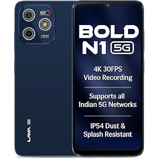 Lava Bold N1 5G (Royal Blue, 4GB RAM, 128GB Storage) |Bigger 6.75″ HD+ Notch Display | Octacore 5G Processor | 13 MP AI Camera |5000 mAh Battery| IP54 Rated Dust & Water Splash Proof