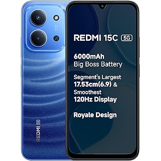 REDMI 15C 5G Moonlight Blue 4GB + 128GB | Royale Design | Massive 6000mAh Battery | Segment’s Largest Display 17.53cm Up to 120Hz | MediaTek Dimensity 6300 | 33W Fast Charging | 50MP AI Dual Camera