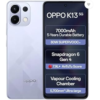 Oppo K13 5G with 7000mAh and 80W SUPERVOOC Charger in-The-Box, ICY Purple (8GB, 256GB)