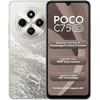 POCO C75 5G Silver Stardust|4GB RAM 128GB ROM|6.88 inch HD+ Display|50MP Camera|5160 mAh Battery