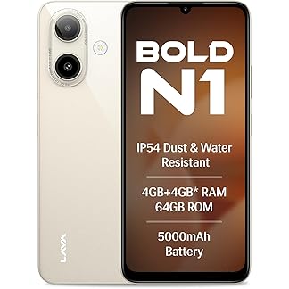 Lava Bold N1 (Sparkling Ivory, 4 GB RAM, 64 GB Storage)| 6.75″ (90 Hz) HD+ Display | 13MP AI Dual Rear Camera | 5000 mAh Battery | Secure Face Unlock | Fingerprint Reader | Charger & Phone-Case in Box