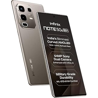 Infinix Note 50s 5G+ (Titanium Grey, 6GB RAM, 128GB Storage) | Slimmest 3D Curved 144Hz AMOLED Display | 5500mAH Battery | Dual Speakers by JBL | 90FPS BGMI | 64MP Sony Camera