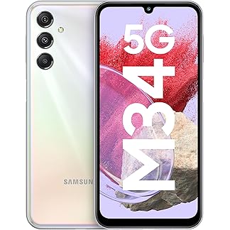 Samsung Galaxy M34 5G (Prism Silver,6GB,128GB)|120Hz sAMOLED Display|50MP Triple No Shake Cam|6000 mAh Battery|4 Gen OS Upgrade & 5 Year Security Update|12GB RAM with RAM+|Android 13|without Charger