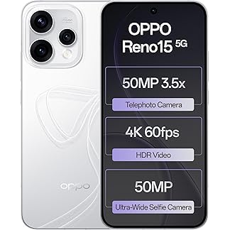 Oppo Reno15 5G (Glacier White, 8GB RAM, 256GB Storage) with No Cost EMI/Additional Exchange Offers