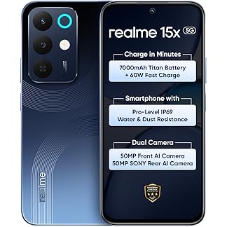 realme 15X 5G Smartphone 8+256GB Marine Blue, 6.8-inch Screen, 144Hz Display,7000mAh Battery, 60W Fast Charging, 50+50MP AI Camera,Dimensity 6300 6nm Octa-core chipset Processor, IP69