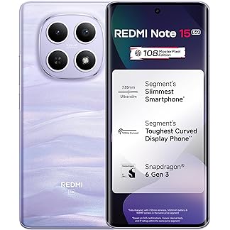 REDMI Note 15 5G (Mist Purple, 8GB RAM 256GB Storage) | 108MP OIS Camera | Snapdragon 6 Gen 3 | 17.2cm Tough Curved AMOLED Screen | Segment’s Slimmest Phone | 5520mAh Si/C Battery | 45W Fast Charging