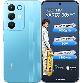 realme NARZO 90x 5G (Flash Blue,6GB+128GB) | 7000mAh + 60W Biggest Battery & Fastest Charging in The Segment* | 144Hz Bright Display | Sony 50MP AI Rear Camera | AI Assist | 400% Ultra Boom Speaker