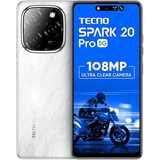 Tecno Spark 20 PRO 5G (Glossy White, 8GB+128GB)| 108MP Ultra Clear Imaging | Super Ellipse Design | MTK D6080 5G Processor | 6.78″ 120Hz LTPS LCD Display | 5000mAh Battery with 33W Charger