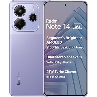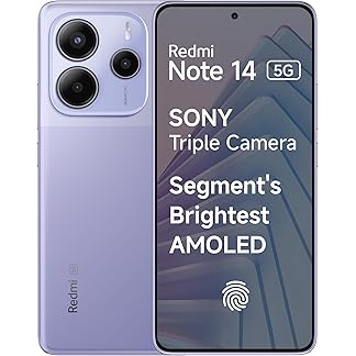 Redmi Note 14 5G (Phantom Purple, 8GB RAM 256GB Storage) | Global Debut MTK Dimensity 7025 Ultra | 2100 nits Segment Brightest 120Hz AMOLED | 50MP Sony LYT 600 OIS+EIS Triple Camera