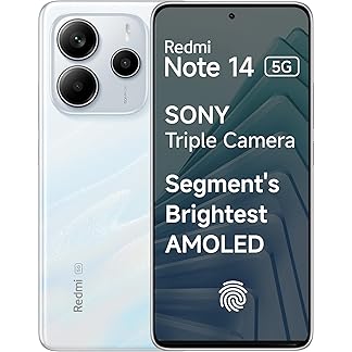 Redmi Note 14 5G (Mystique White, 6GB RAM 128GB Storage) | Global Debut MTK Dimensity 7025 Ultra | 2100 nits Segment Brightest 120Hz AMOLED | 50MP Sony LYT 600 OIS+EIS Triple Camera
