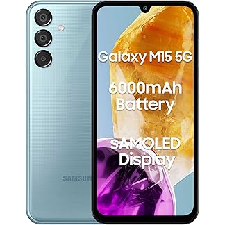Samsung Galaxy M15 5G (Blue Topaz,6GB RAM,128GB Storage)| 50MP Triple Cam| 6000mAh Battery| MediaTek Dimensity 6100+| 4 Gen. OS Upgrade & 5 Year Security Update| Super AMOLED Display| Without Charger