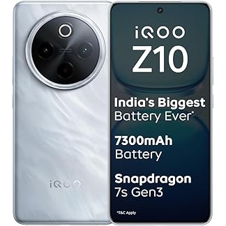 iQOO Z10 5G (Glacier Silver, 8GB RAM, 256GB Storage) | India’s Biggest Ever 7300 mAh Battery | Snapdragon 7s Gen 3 Processor | Brightest Quad Curved AMOLED Display in The Segment