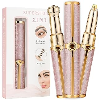 SUPERSTUD Eyebrow Trimmer for Woman All in One, 2-in-1 Eyebrow Epilator, Women Face Trimmers for Facial Hair Remover for Face, Upper Lips, Nose, Ear, Portable & Rechargable Epilators With Ring Light (Pink)