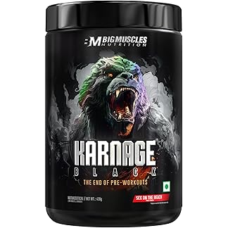 Bigmuscles Nutrition Karnage Black Preworkout [Sex On The Beach, 420g] | Massive Pump | Laser Focus | Explosive Energy | Gorilla Power | No Itching | With Nitrosigine