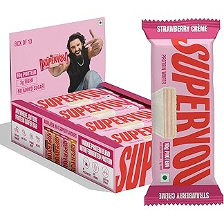 SuperYou Strawberry Protein Wafer Bars (Pack of 10)|10g Protein, 3g Fiber, No Added Sugar|Yeast Fermented Protein|Energy Bars|Crunchy Wafer Bar|100% Vegetarian|No Palm Oil|400g