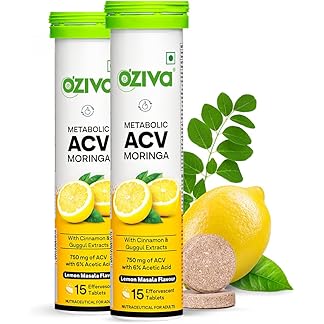 OZiva Apple Cider Vinegar Effervescent Tablets To Control Cravings | Moringa With Cinnamon & Guggul Extracts | No Maltodextrin, No Added Sugar | 15 Tablets Each, Lemon Masala (Pack of 2)