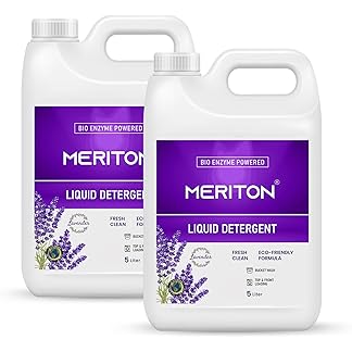 Meriton Bio Enzyme Powered Liquid Detergent For All Types Of Clothes| Lavender Scent | Fresh Clean | Eco-Friendly Formula | Suitable For Top & Front Load – 5 Liters (Pack Of 2)