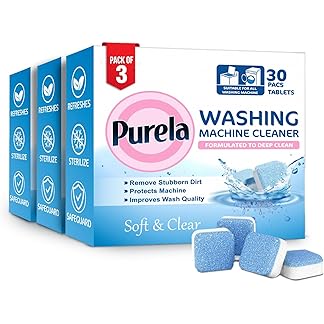 Purela Washing Machine Cleaner – 90 Pack, Descaler For All Washing Machine Front Load and Top Load, Deep Cleaning Descaling Powder Tablets Clean Inside Drum And Laundry Tub Seal