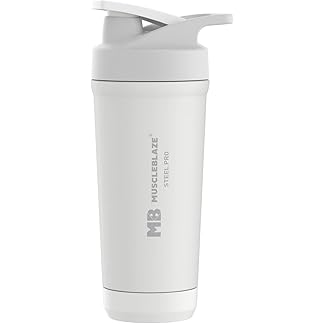 MuscleBlaze Stainless Steel Gym Shaker Pro (White, 700ml)