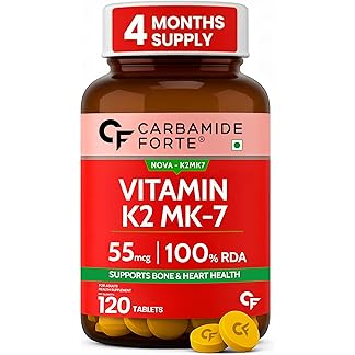 Carbamide Forte Vitamin k2 mk7 55 mcg | MK7 Form for Better Calcium Utilization | vitamin k2 supplement to Support Strong Bones & Heart Health for Men & Women | 120 Vegetarian Tablets