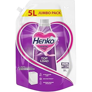 Henko Matic Top Load Liquid Detergent – 5L Jumbo Pack with Nano Fiber Lock Technology, 99.9% Germ Protection, Bio Stain Power & Ultra Color Care which maintains the Newness, Color & Shine
