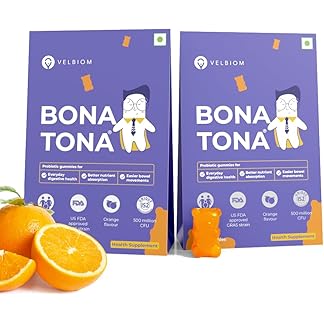 Velbiom Bonatona Probiotic Gummies For Effective Digestion, Lasting Immunity Clinically Proven & US FDA Approved For Kids & Adults – Pack of 10x2Gummies, Orange Flavor