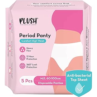 Plush Anti-Bacterial Sanitary Period Panties for Women | Size M/L (60-100cm) | Comfort High Waist | 12 Hour Leak Protection | Rash-Free | Zero Irritation | 360° Coverage | 5Pcs (White Colour)