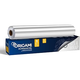 Origami Silver Aluminium Foil for Food Packing 9m with 11 Micron Thickness | Keeps Food Warm and Hygienic | Ideal for Storing, Packing, Wrapping, and Serving