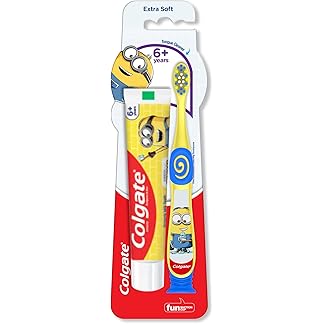 Colgate Kids (6+ Years) Minion Toothbrush, Extra Soft With Tongue Cleaner – 1 Pc & Minion Toothpaste – 40 Grams, Manual, Multicolor