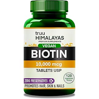 truu Himalayas Biotin 10000mcg for Hair Growth, Glowing Skin & Nails – 120 Veg tablets – Vegan Biotin Supplement for Men & Women Hair Health – Vitamin B 7 – PureVe Forte Medicine – Zero Preservatives