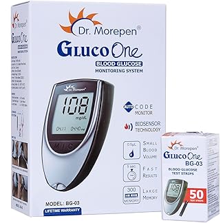 Dr. Morepen BG-03 Gluco One Glucometer Combo, 50 Strips (Multicolor)