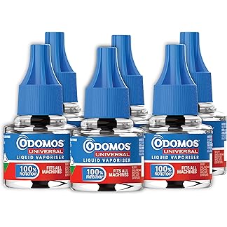 Odomos Universal Liquid Vaporiser – 45ml x Pack of 6 | Mosquito Repellent Single Refill | 100% Protection| Fits all machines | Protects Dengue, Malaria & Chikungunya Mosquitoes |