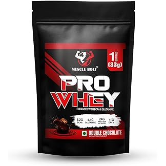 MUSCLEBOLT Pro Whey Protein | Muscle Growth | Muscle Recovery | Easy Digestion | 24g Protein, 5.2g BCAA, 4.1g Glutamine, for Increase strength & performance (Double Chocolate, 33gm)