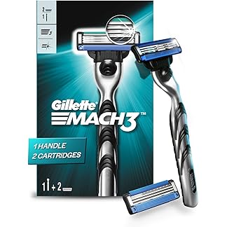 Gillette Mach 3 (Handle + 2 Cartridges) Razor for Men,Value Pack with 3 Anti-Friction blades, Dynamic Pivot for Smooth & Comfortable shave,Ergonomic handle & Lubrastrip|For safe shave & sensitive skin
