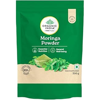 A TATA Product – Organic India Moringa Powder, Dietary Supplement, Superfood, Rich In Vitamins, Minerals & Amino Acids, For Immunity, Digestion & Energy, Gluten Free, Certified Organic, 200g, Pouch