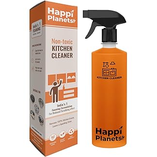 Happi Planets | Kitchen Cleaner | India’s 1st Foaming Formulation for Less Scrubbing | 500ml | Suitable for Stoves, Chimneys, Counter Tops, Appliances, Walls & Cabinets | Non Toxic & Natural