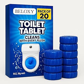 BELOXY Automatic Flush Toilet Bowl Cleaner Tablets, Bathroom Toilet Tank Cleaner, Powerful Cleaning Ball Toilet Blue Deep Clean Bubbles, Mild Lemon Scent (1) (20)
