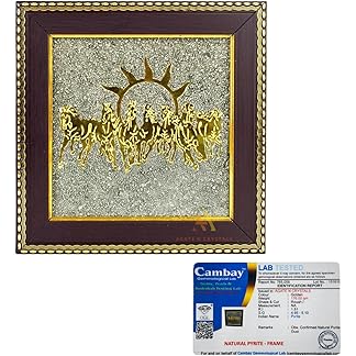 AGATE N CRYSTALS 7 Horses on Raw Pyrite Frame | Seven Horses Wall Decor Vastu Item for Money, Success & Fame | Pyrite Stone Frame for Home & Office | Wall Hanging Decor & Gift | 18x18x1 cm, 1 Piece