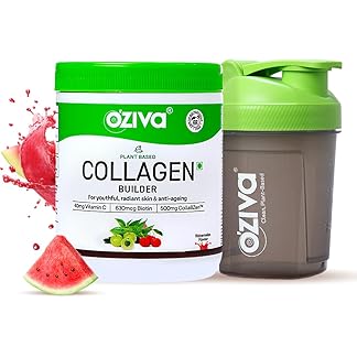 OZiva Vegan Collagen (Watermelon) with Biotin & Vitamin C For Brighter & Youthful Skin | Collagen Supplement For Women & Men | Plant Based Collagen Powder | Certified Vegan 125g + Shaker
