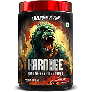 Bigmuscles Nutrition Karnage Pre workout (60 Servings, Sex On the Beach) | Pre-workout Supplement Supports to Improve Focus, Strength, Energy and Pump, Banned Substance Tested, Dope Free, 300g